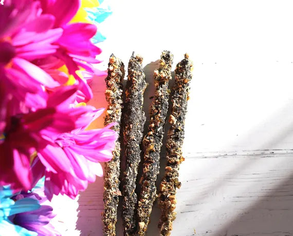 Incluye recetas detalladas para crear sahumerios naturales con hierbas, resinas y otros ingredientes fáciles de conseguir, además de consejos de uso.